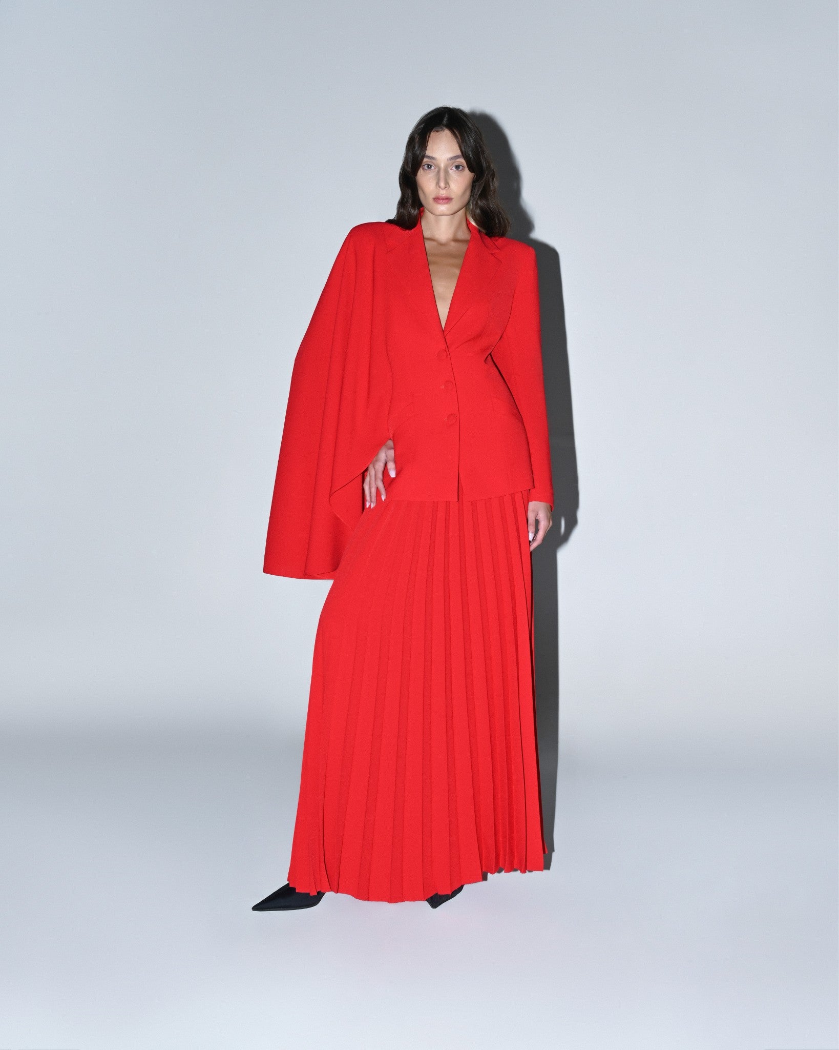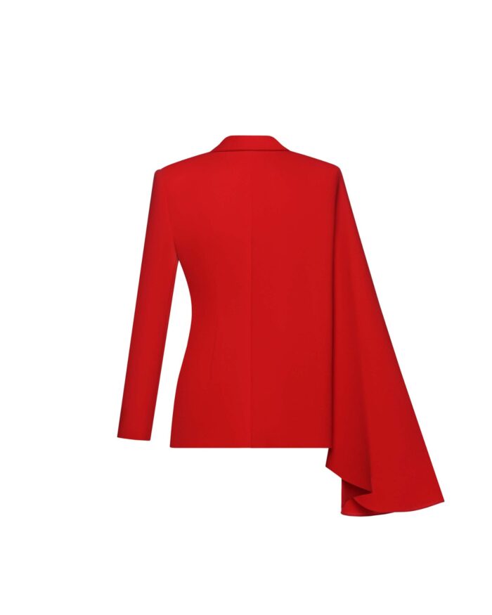 El blazer rojo es una prenda elegante. Sus mangas asimétricas crean una silueta favorecedora. Los botones realzan el blazer. Está diseñado para una cintura definida.
