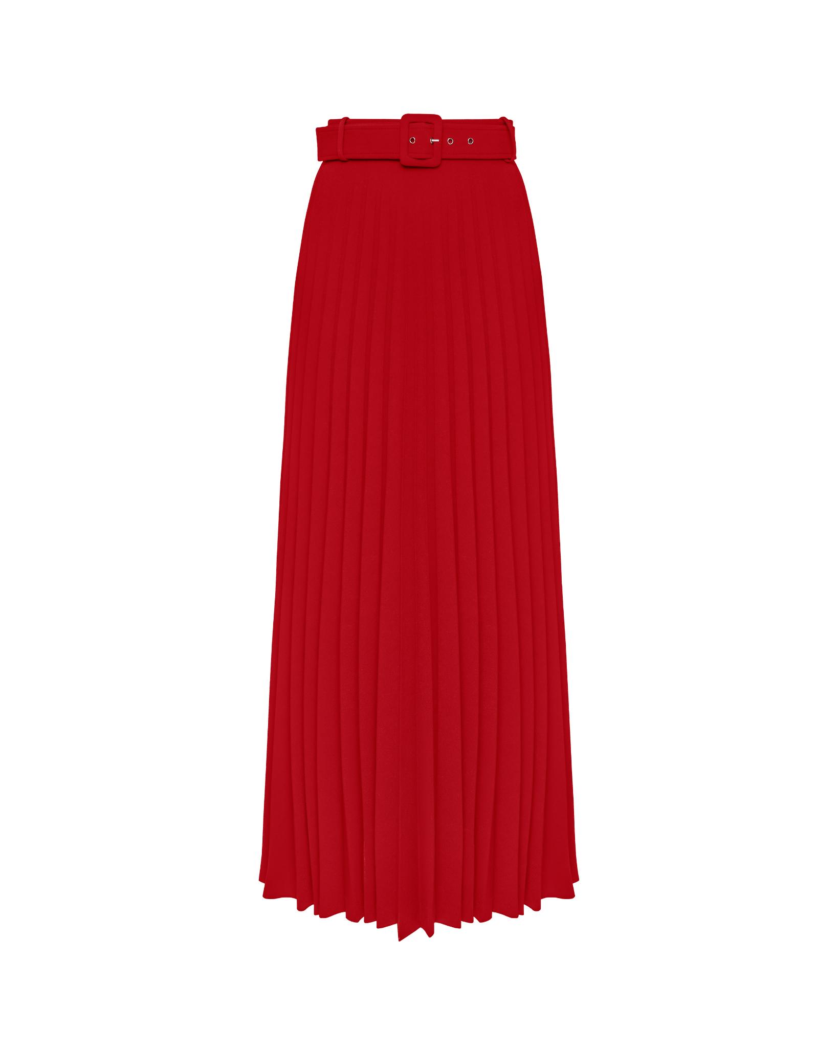Esta impresionante falda plisada roja, con cinturón ajustable, ofrece una silueta elegante y fluida. Su color intenso la convierte en una prenda destacada para cualquier conjunto elegante.