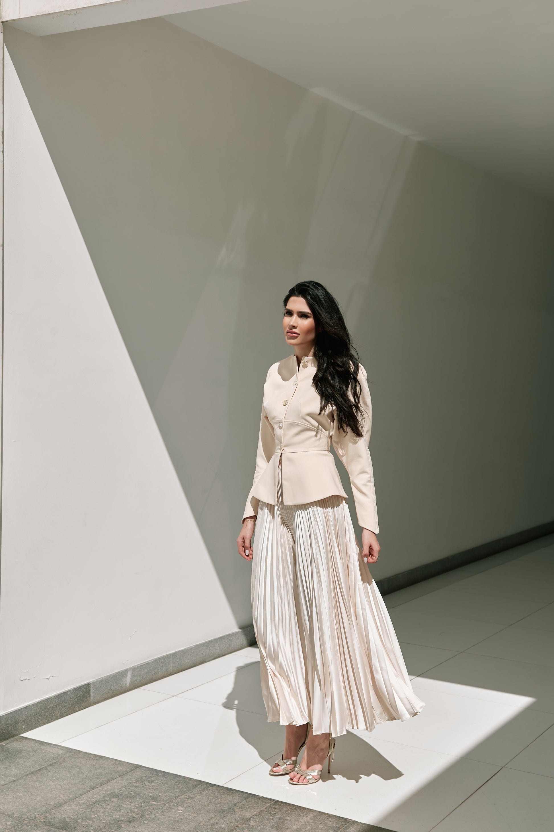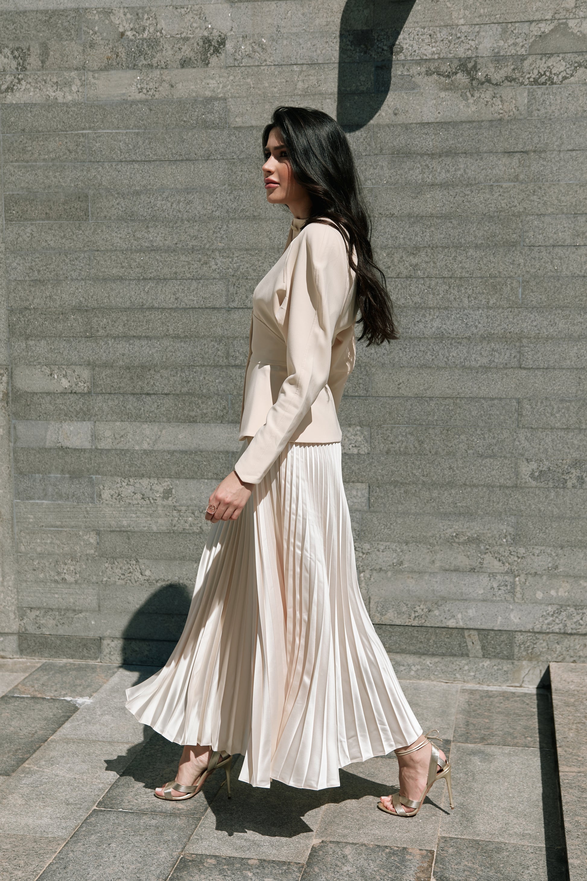 Falda | Con sus delicados pliegues, esta falda maxi beige irradia un movimiento grácil y una elegancia atemporal. Una prenda básica y versátil, perfecta para crear looks de día desenfadados o conjuntos de noche sofisticados.